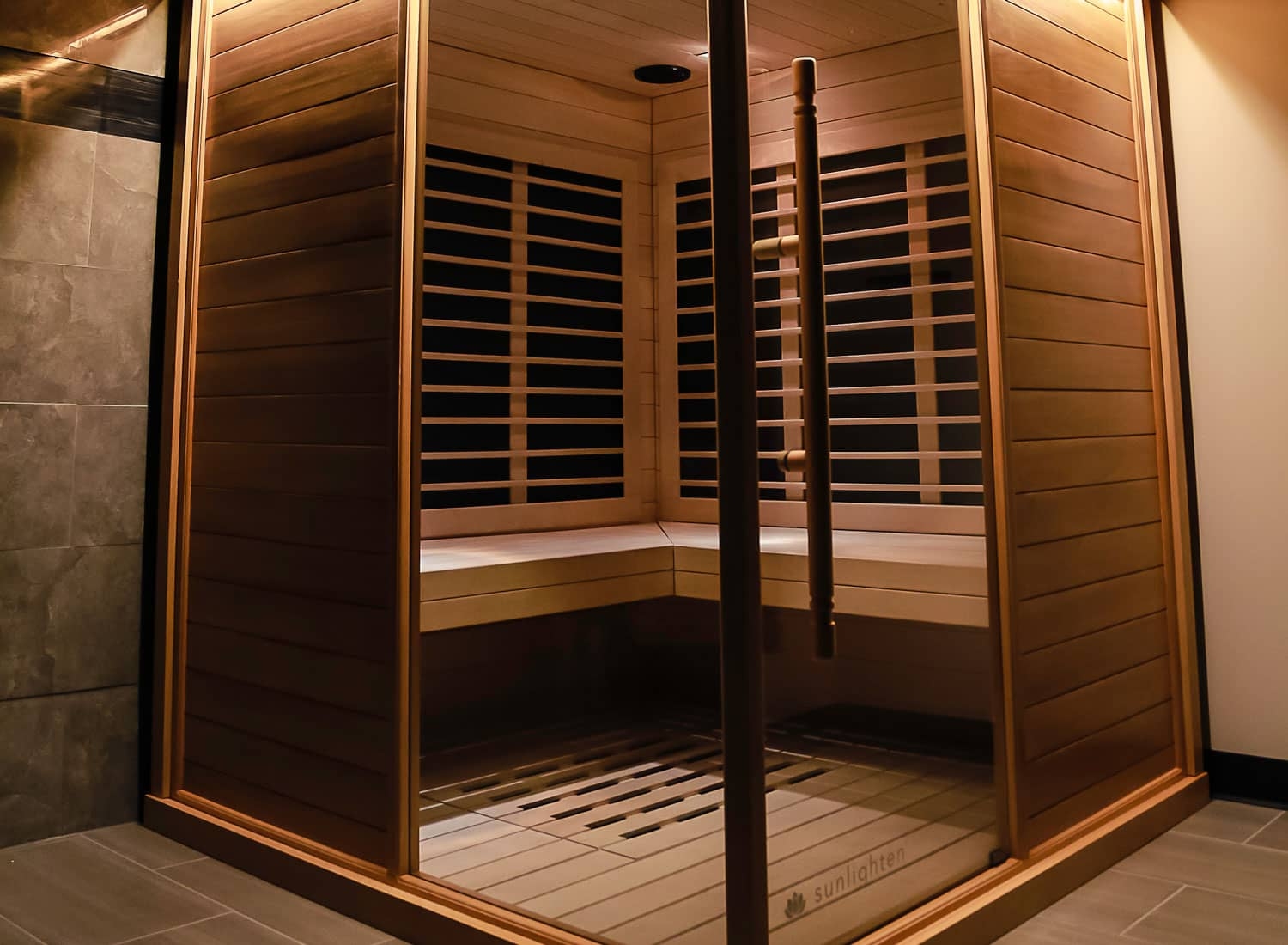 Instead of heating the air around you like a normal sauna, infrared rays directly heat your body tissue below the skins surface, allowing you to sweat out toxins (among other benefits such as weight loss) instead of indirectly heating your body like a normal sauna.